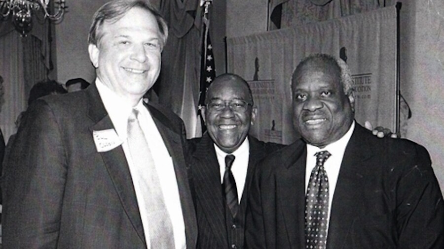 Main Image: Religious right attorney and GOP activist William J. Olson with Justice Clarence Thomas (Photo: Lawandfreedom.com)