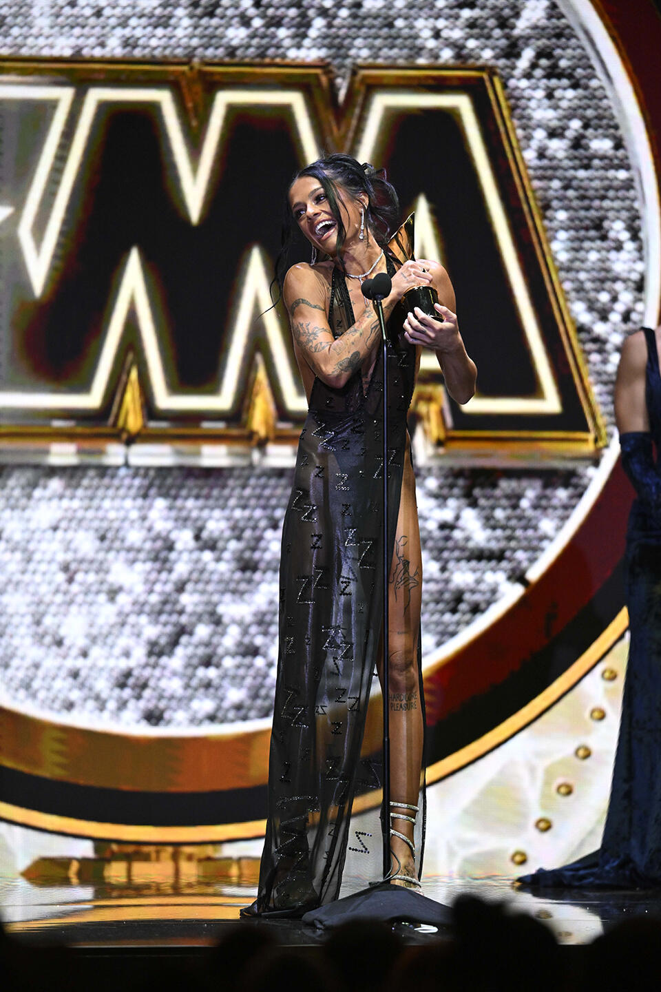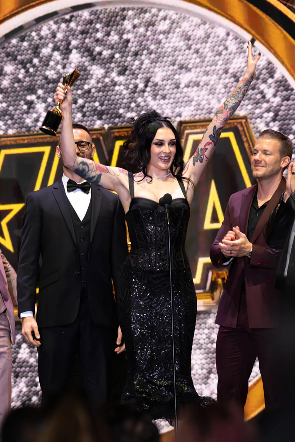 Presented by Fansly, the ceremony was hosted by multi-XMA winners Violet Myers and Kazumi, who made a dazzling first impression as they took the stage in glittering gold and silver, respectively. The pair immediately set the tone for the night with equal parts irreverence and affection for the community they call home.